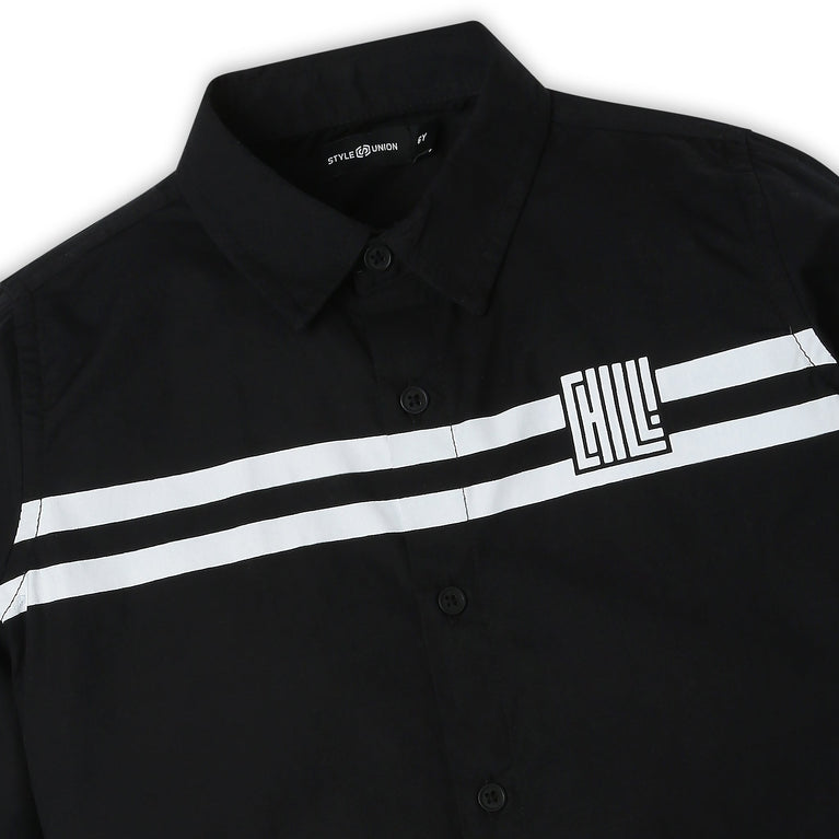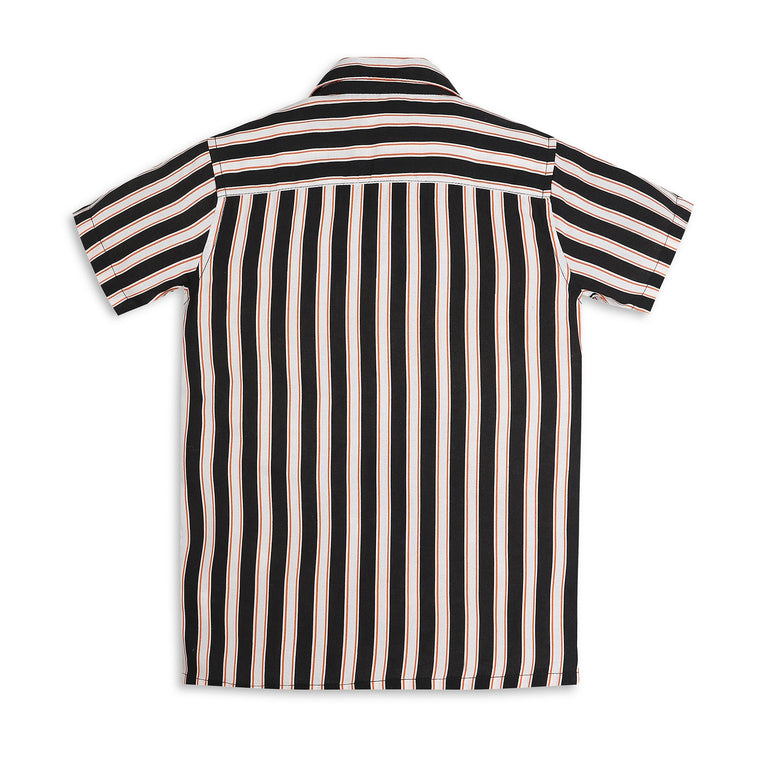 These striped pattern shirt has shirt collar and half sleeve. Made from rayon, your kid's feel comfortable wearing the product.