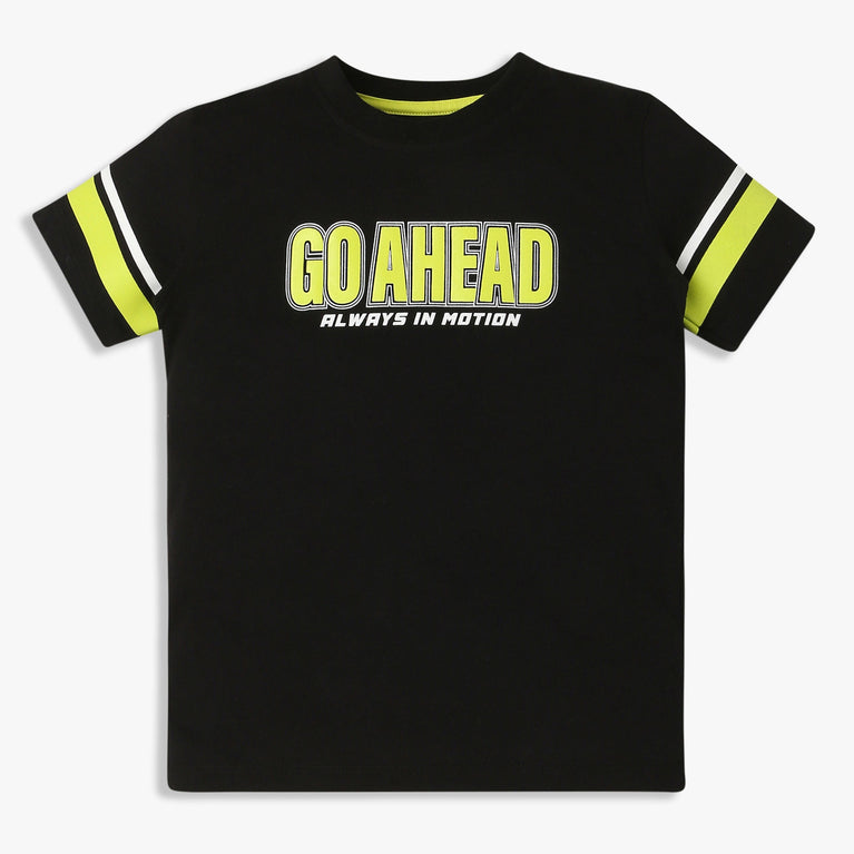 These printed pattern t-shirt has crew neck and half sleeve. Made from cotton, your kid's feel comfortable wearing the product.