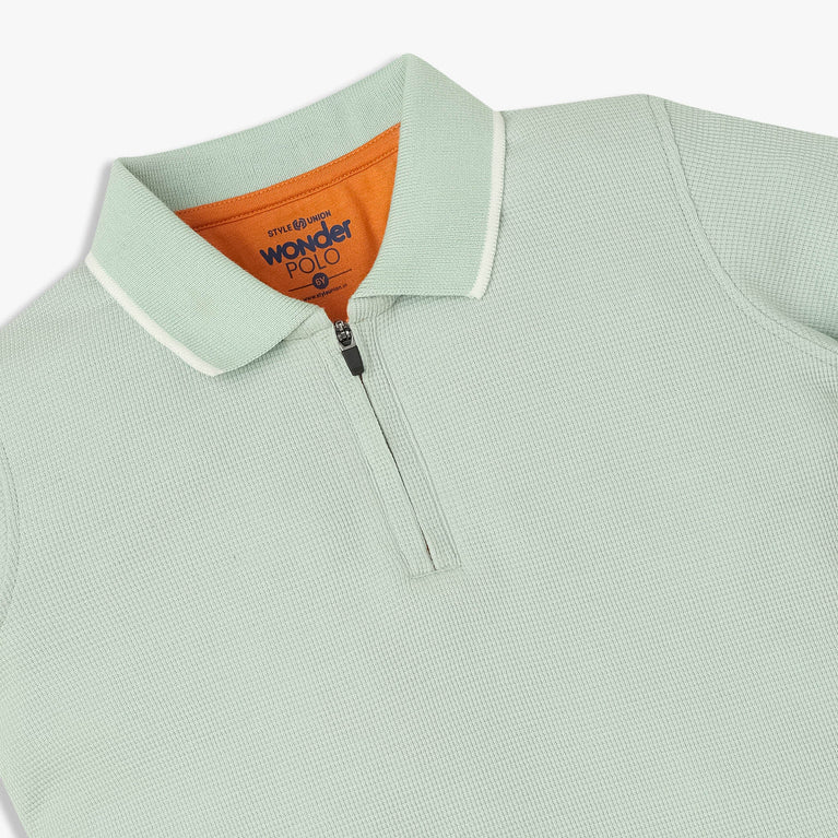 Boys Solid Polo Neck Wonder Reverse Coil Zipper T-Shirt