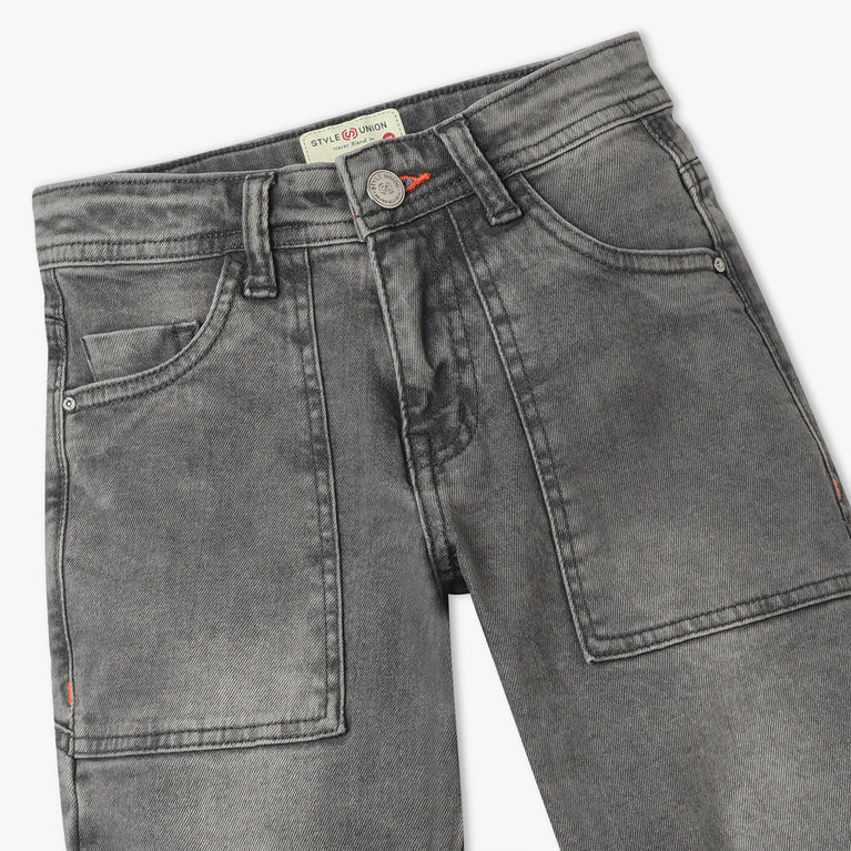 Let your little one stay active and stylish with Style Union Boys Solid Cargos. Crafted from breathable 100% Cotton, these regular fit full-length cargos are perfect for everyday adventures. The mid-rise waist offers a secure fit, while four spacious pockets provide room for all their little essentials.