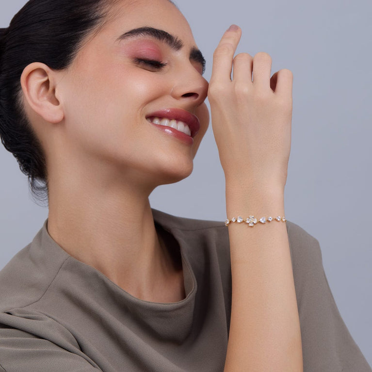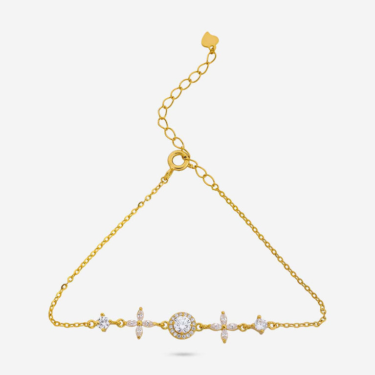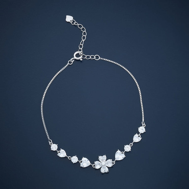 Kushal's Fashion Jewellery Office Wear 92.5 Silver BraceletFall in love with our range of bracelets for your special occasions. We aim to provide quality with exceptional 92.5 silver. The zircon stones ensure the shimmering look of the bracelets. You can rely on our polish options – rose-gold, gold and rodium. The adjustable chain of the bracelet makes sure that they are comfortable to wear.