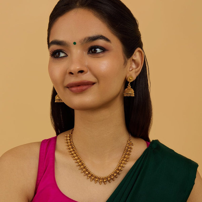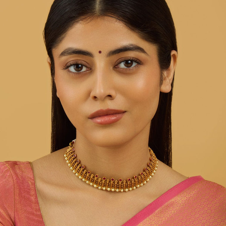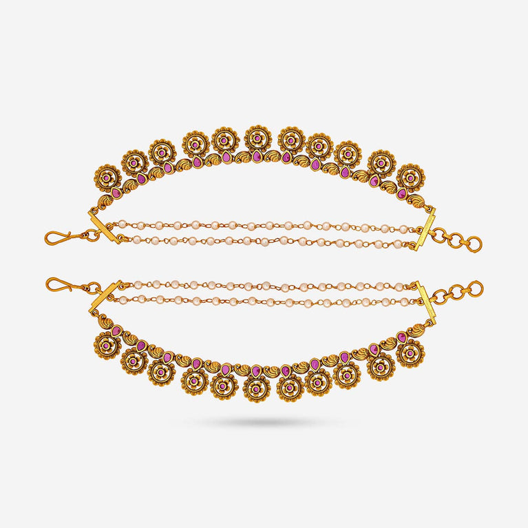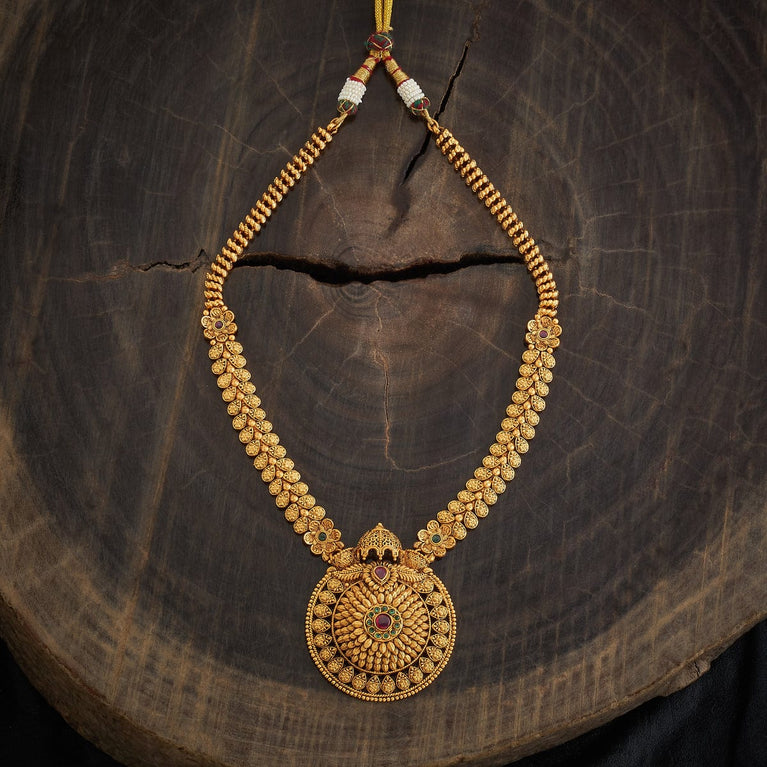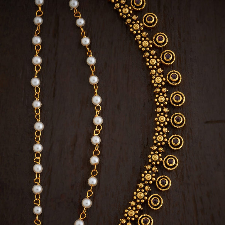 Kushal's Fashion Jewellery Antique MatilGet a traditional look with our collections of antique matil. Made of quality copper alloy, this matil will elevate your conventional look when paired with traditional attire. Our synthetic stones and beads ensure the shimmering look of the jewellery. This gold-polished matil will add a fresh look to your traditional fashion.