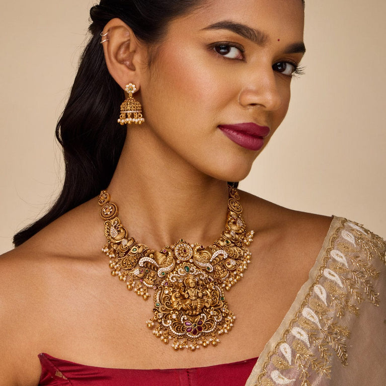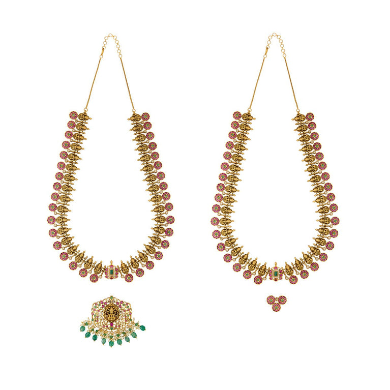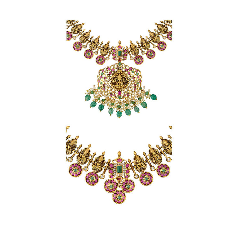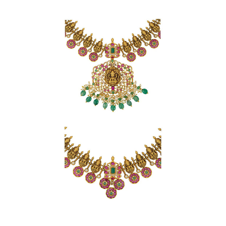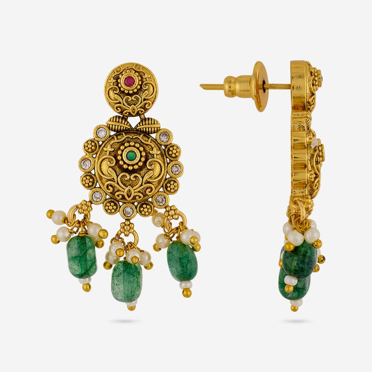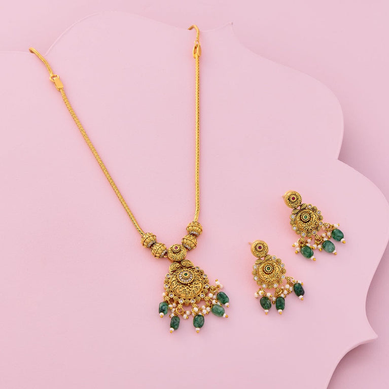 Kushal's Fashion Jewellery Flower Motif Antique TikkaIdeal for those who appreciate the charm and elegance of a decent look! Crafted with precision, our antique tikka boasts a queenly allure that never fails to wow. It's encrusted with brilliantly gleaming synthetic ruby and green-coloured stones, which adds an irresistible sparkle to your regal charm. Known for its decent appearance, it blends the traditional aesthetic with a contemporary sensibility.