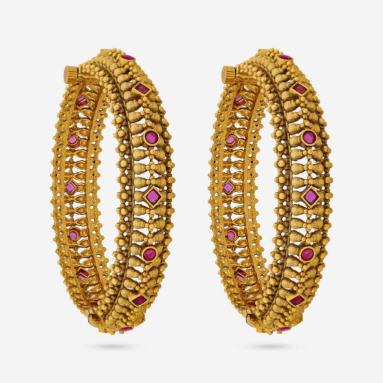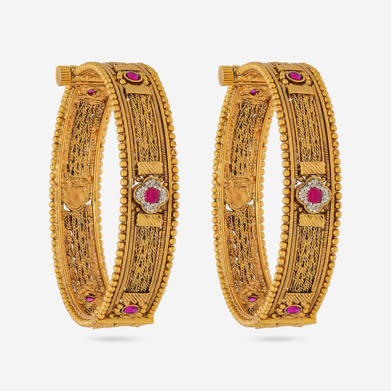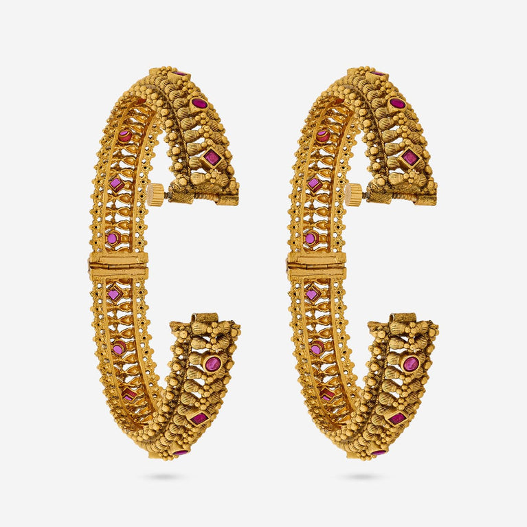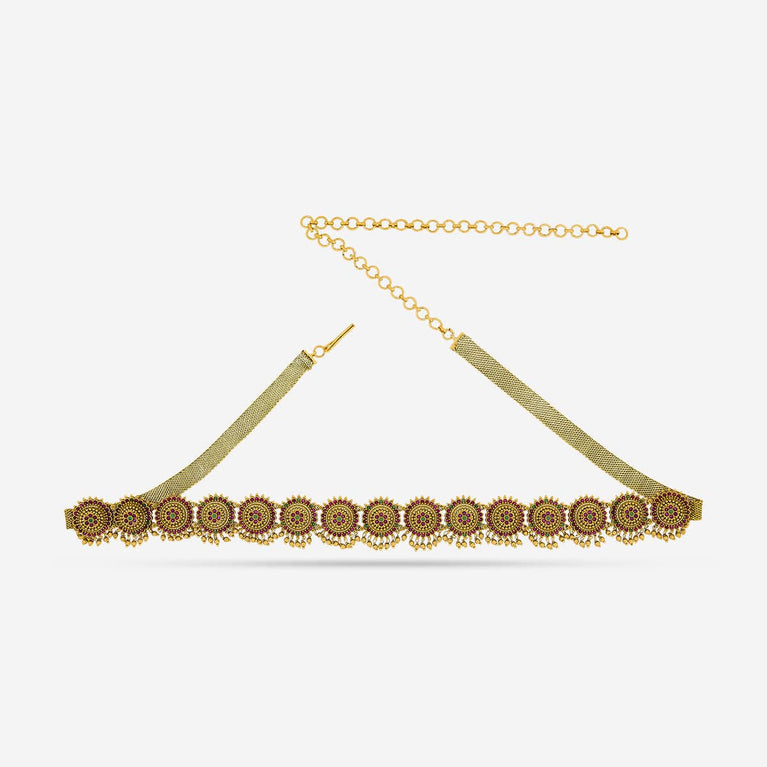 Kushal's Fashion Jewellery Flower Design BeltIf you are tired of wearing the common fashion accessories and want something different to touch up your look, you need our latest antique belt studded with ruby stones. This belt will go perfectly with all ethnic outfits and traditional accessories to effortlessly make you the trendsetter this wedding season.