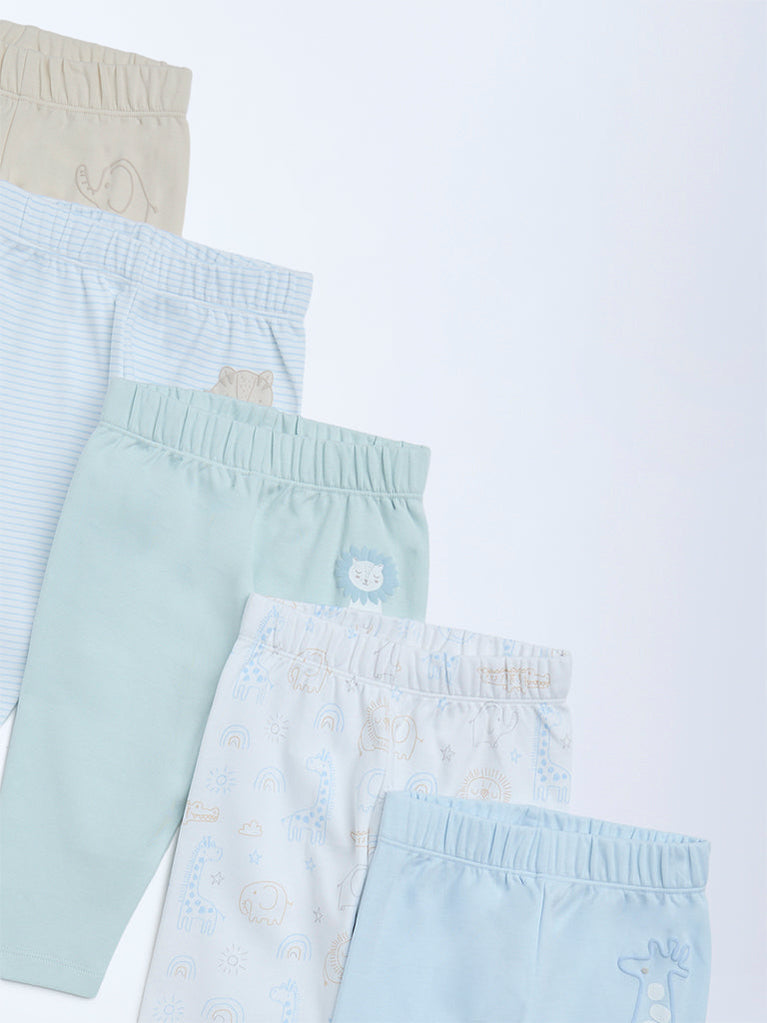 HOP Baby Boys Multicolour Printed Mid-Rise Cotton Pants - Pack of 5