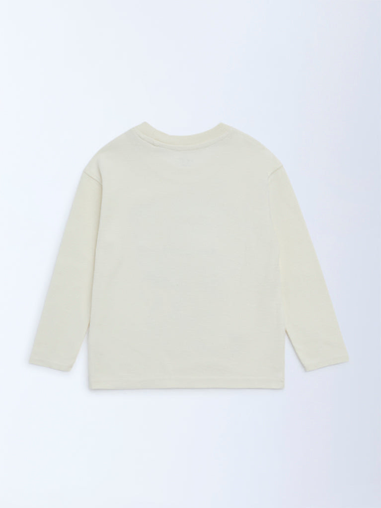 HOP Kids Boys Off-White Printed Cotton T-Shirt