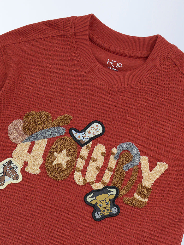 HOP Kids Boys Rust Embroidered Cotton T-Shirt