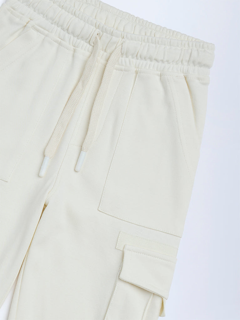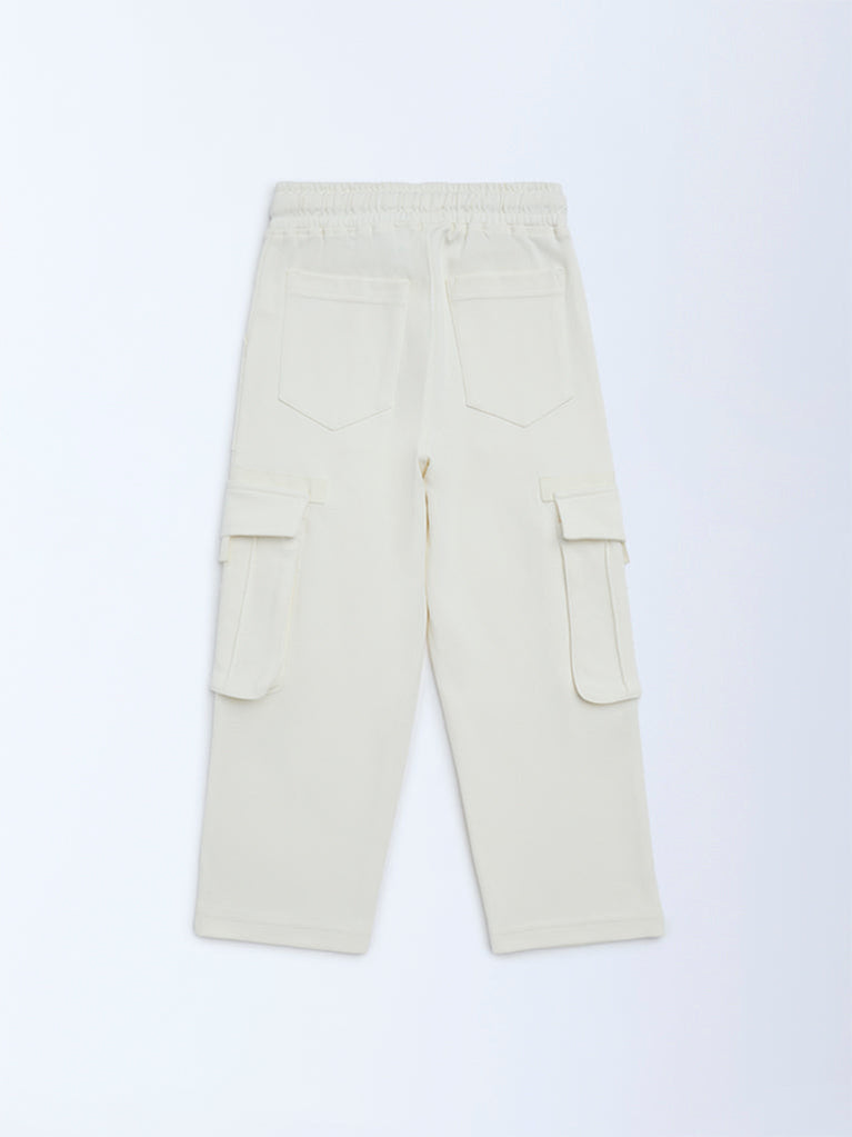 HOP Kids Boys Cream Cargo-Style Mid-Rise Cotton Pants