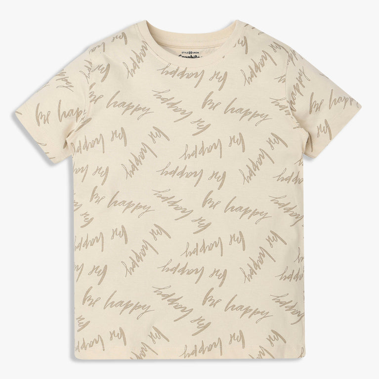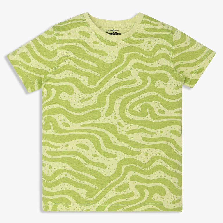 Discover the ultimate comfort and style with our Boy's Cotton Crew Neck Graphitee T-Shirt. Crafted from soft cotton, this regular fit tee features an eye-catching all-over print, perfect for any young trendsetter.