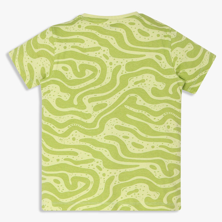 Introducing the Boy's Cotton Crew Neck Graphitee T-Shirt, a perfect blend of comfort and style for active boys. Crafted from soft cotton, this T-shirt features a vibrant all-over print that adds a fun touch to any outfit.