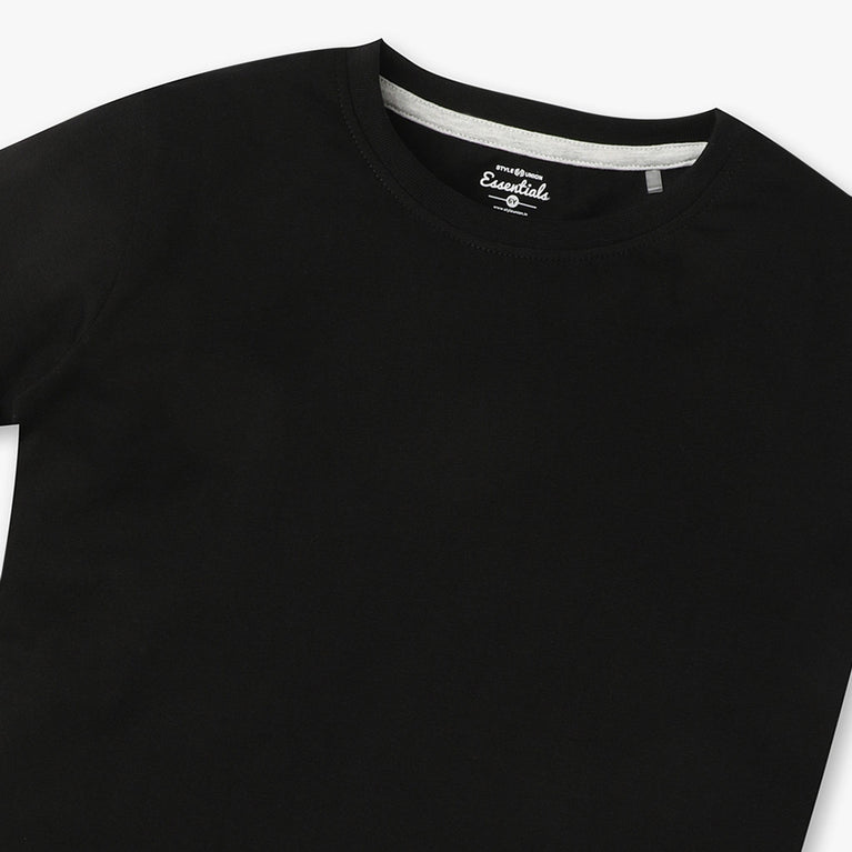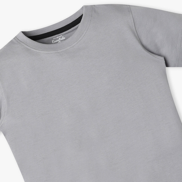 Experience the ultimate in comfort and style with our Boys Solid Crew Neck T-Shirt. Crafted from 100% cotton, this t-shirt offers a soft touch against the skin, ensuring all-day comfort for your little one. Its solid pattern and classic crew neck design make it a versatile addition to any wardrobe, perfect for casual outings or playdates.