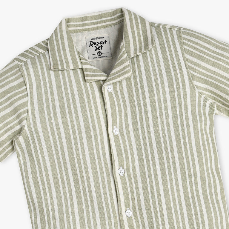 Experience the perfect blend of comfort and style with this boys' cotton striped shirt. Crafted from 100% cotton, it offers a soft touch against the skin, ensuring all-day comfort. The classic striped pattern adds a timeless appeal, making it a versatile addition to any wardrobe.