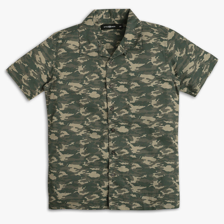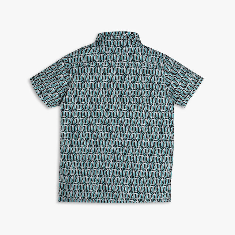 These casual shirt theme, printed pattern shirt has shirt collar and half sleeve. Made from cotton, your kid's feel comfortable wearing the product.