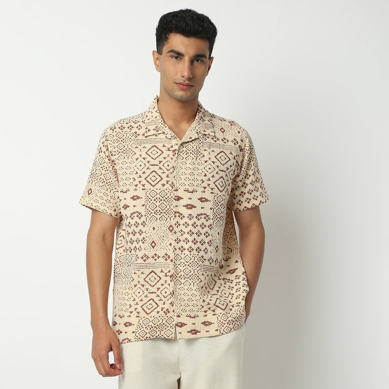 Camp Collar Half Sleeve Cuban Printed Relaxed Fit Shirt