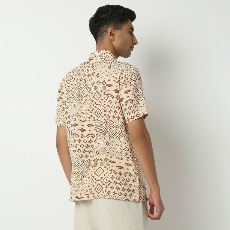 Camp Collar Half Sleeve Short Length Relaxed Fit Cuban Printed Shirt
