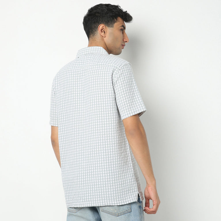 Camp Collar Half Sleeve Relaxed Fit Block Print Shirt