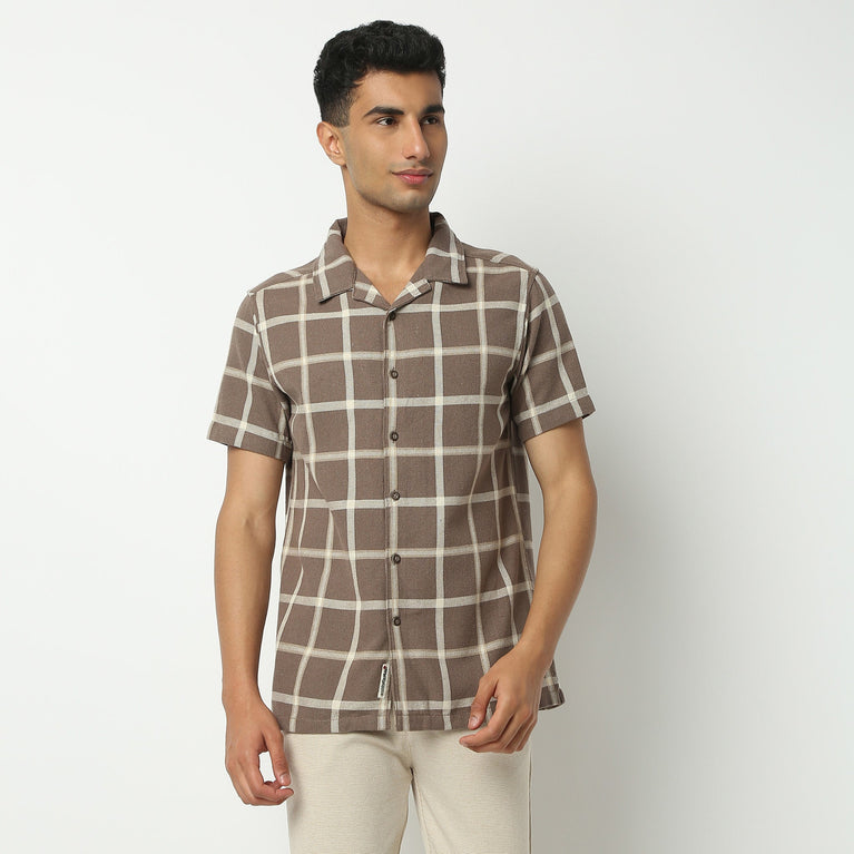 Experience the perfect blend of comfort and style with our Regular Fit Checkered Camp Collar Shirt. Crafted from 100% cotton, this shirt offers a soft touch against your skin, making it ideal for all-day wear. The checkered pattern adds a classic touch, while the camp collar brings a laid-back vibe, perfect for casual outings or relaxed office days.