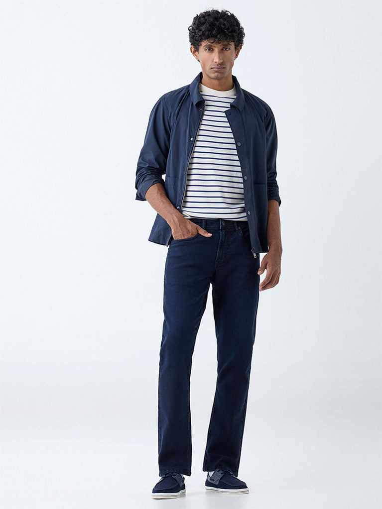 For days when comfort is non-negotiable, these dark blue jeans from Ascot deliver with ease. Constructed from a breathable cotton blend in a relaxed handle, they feature a smooth elastic waistband, belt loops, and a classic zip fly. Multiple pockets add everyday practicality, while the premium finish keeps the look effortlessly polished.