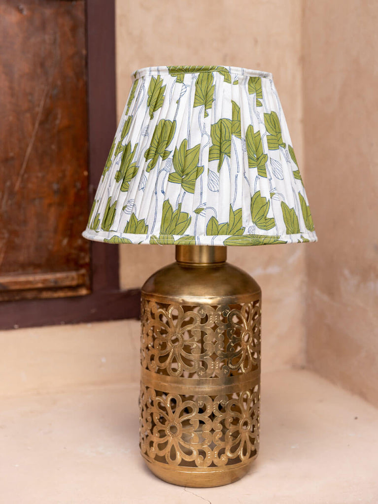 Gazal Metal Cutwork Wooden Base Table Lamp