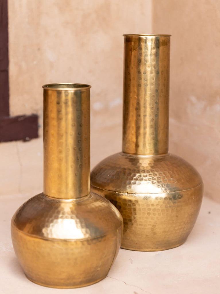 Set of 2 - Jwala Wooden Base Cutwork Metal Candle Stand