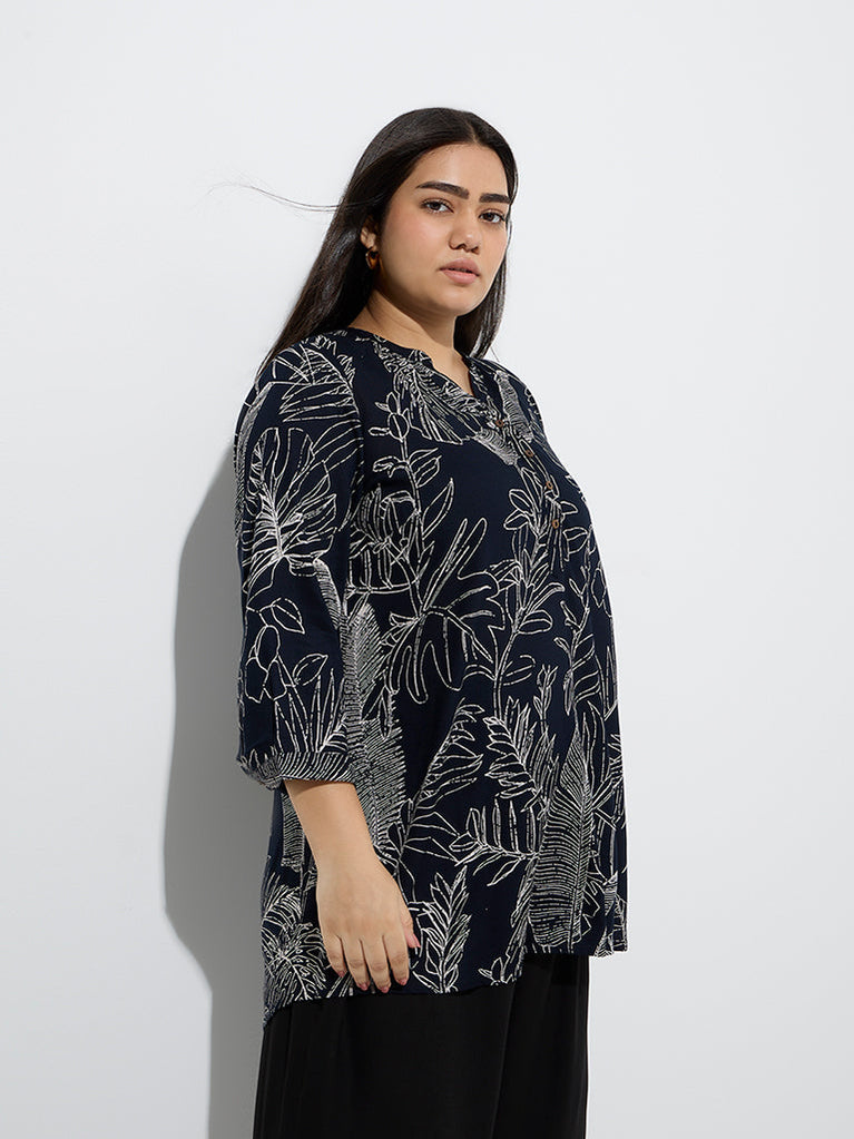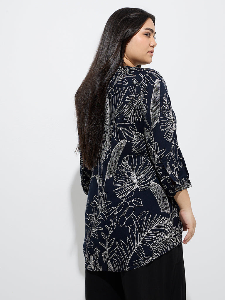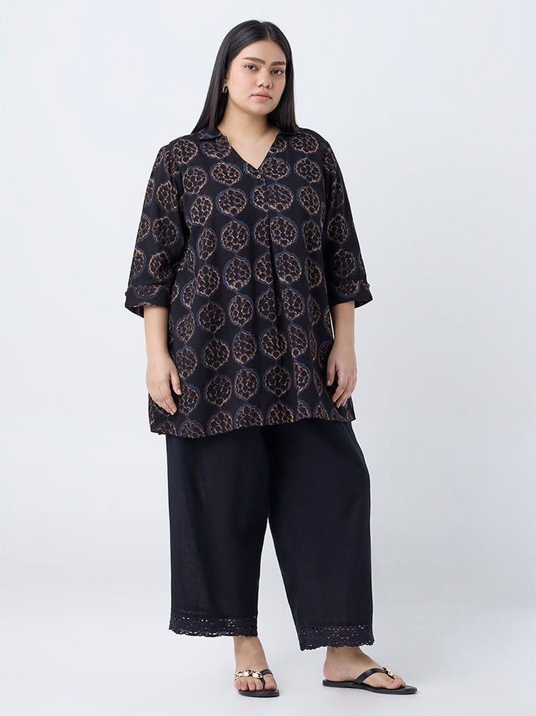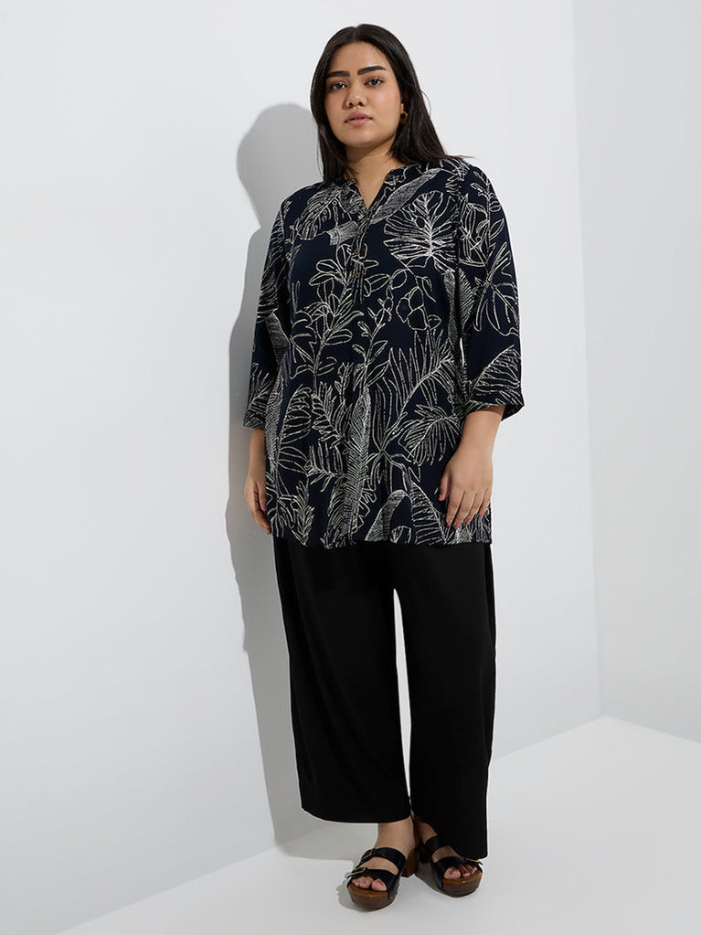 Diza Black Foliage Pattern Tunic