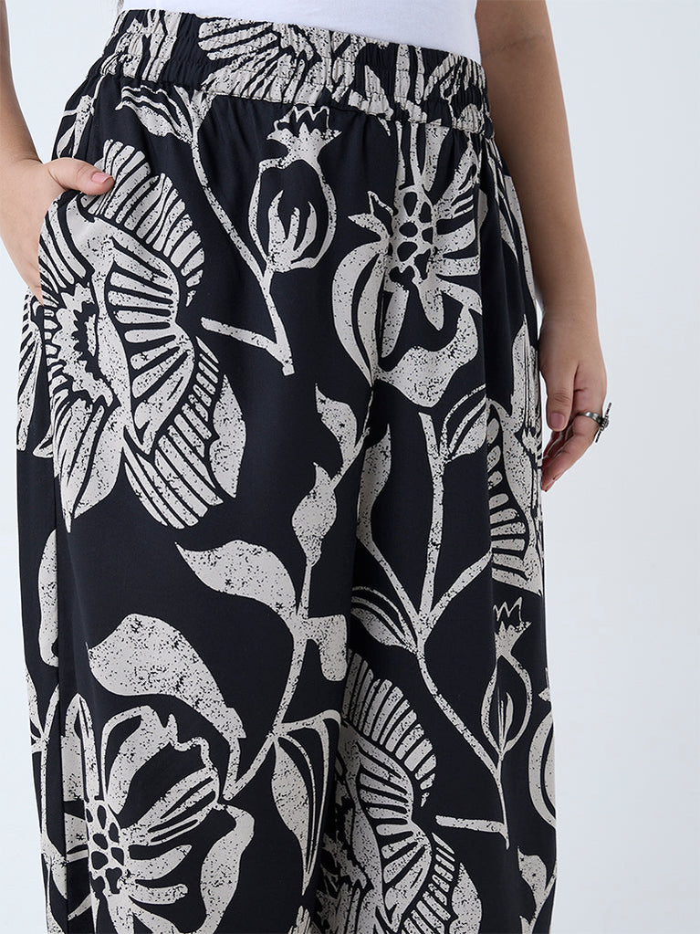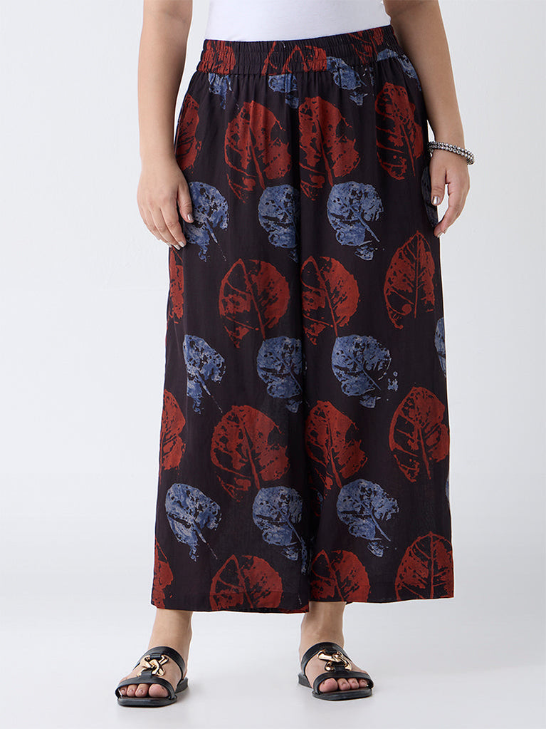 Diza Black Foliage Pattern Ethnic Pants