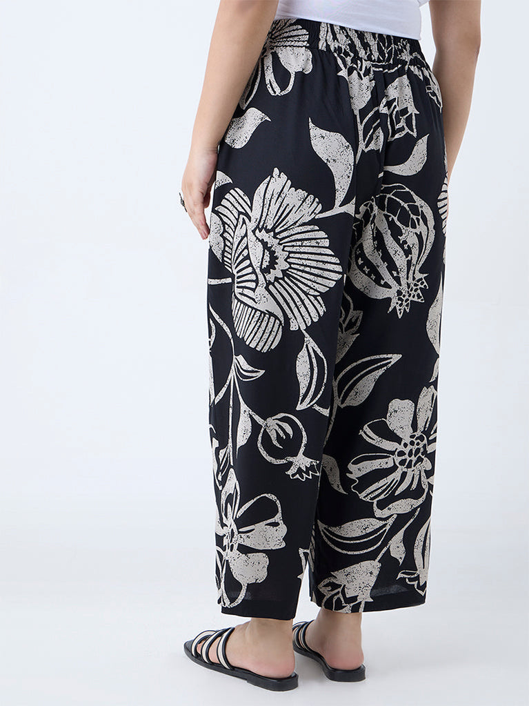 Diza Black Floral Pattern Pants