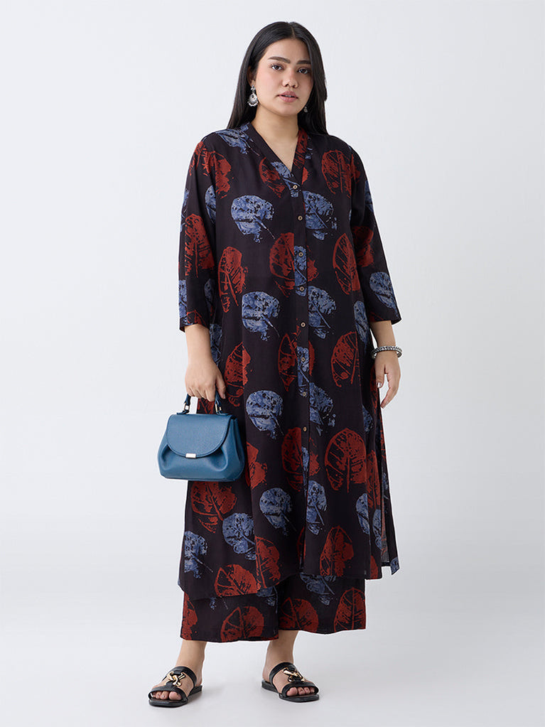 Diza Black Leaf Design A-Line Kurta