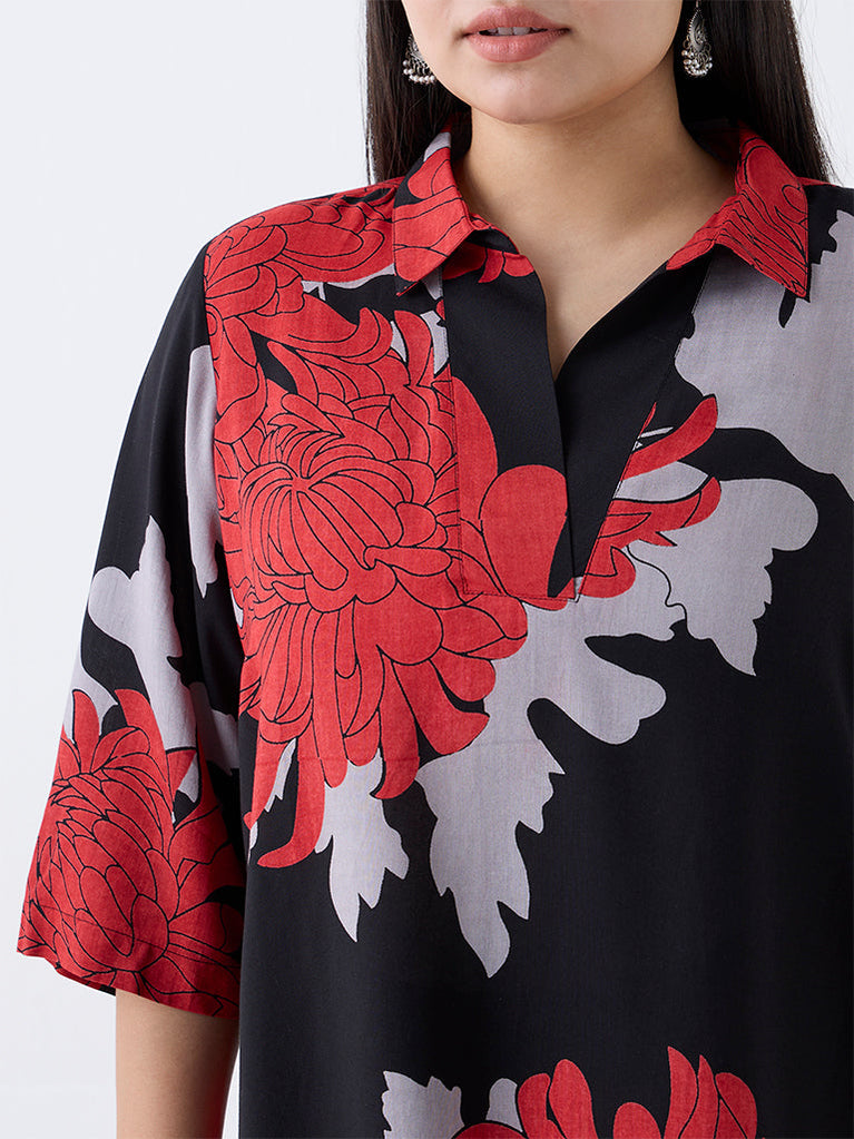 Diza Black Floral Printed Tunic