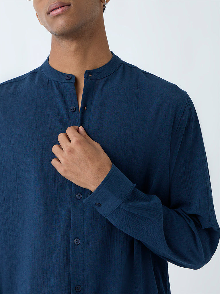 Anchor your style in this navy shirt from ETA. Milled from a sumptuous fabric in a relaxed silhouette for all-day ease, it is completed with a mandarin collar, a button placket, and full sleeves.