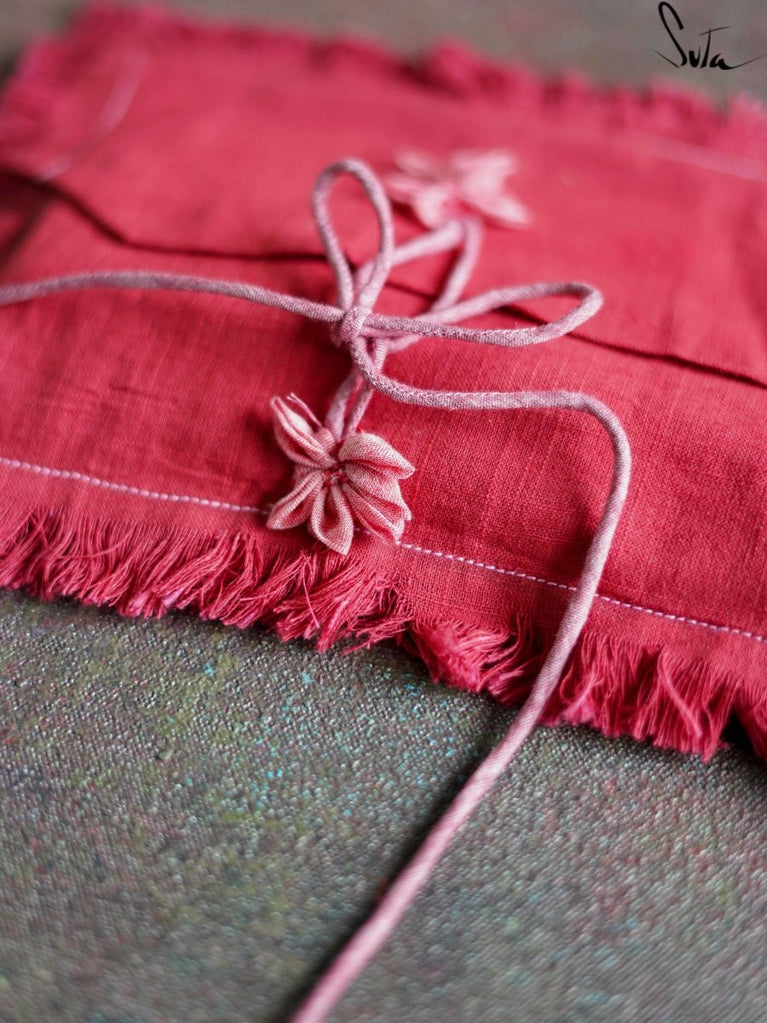 This is a fabric envelope to pack your Rakhi with extra love. The fabric of the envelope is cotton slub and the envelope contains a compartment to place money, a card with a sweet message, 2 small mul pouches with laung-elaichi and rice, respectively and a little coin pouch replica as a stamp.