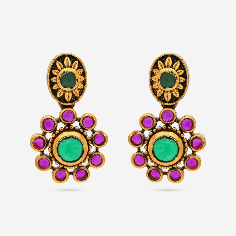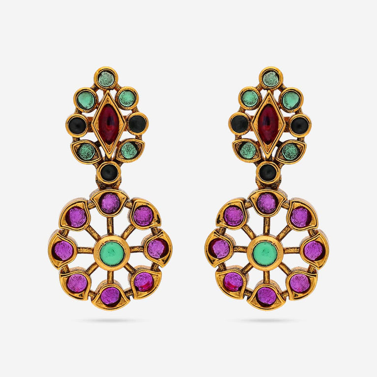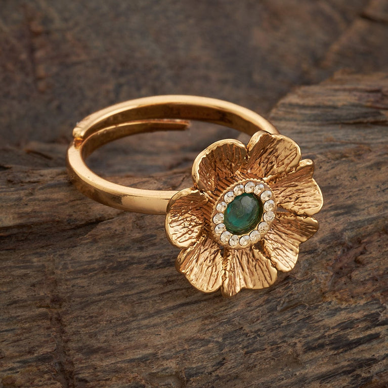 Antique Finger Ring Embellished with stonesRedefine elegance as you adorn this sizzling bridal ring from our collection. This ring has a copper alloy base that makes it too comfortable to wear and flaunt. The stonework on the floral design is like a crowning stroke for this ring. So, what’s stopping you from adding this piece of elegance to your bridal attire?