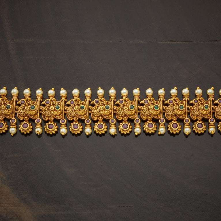 Kushal's Ruby & Green Antique Belt With Stones & Beads Nothing will make your clothing gleam and shine like a beautiful antique belt. This antique belt in hues of green and ruby will brighten your day and give a touch of class to your outfit. Magnificent and enthralling, this well-designed belt is ideal for traditional and contemporary attire to make you look ravishing.