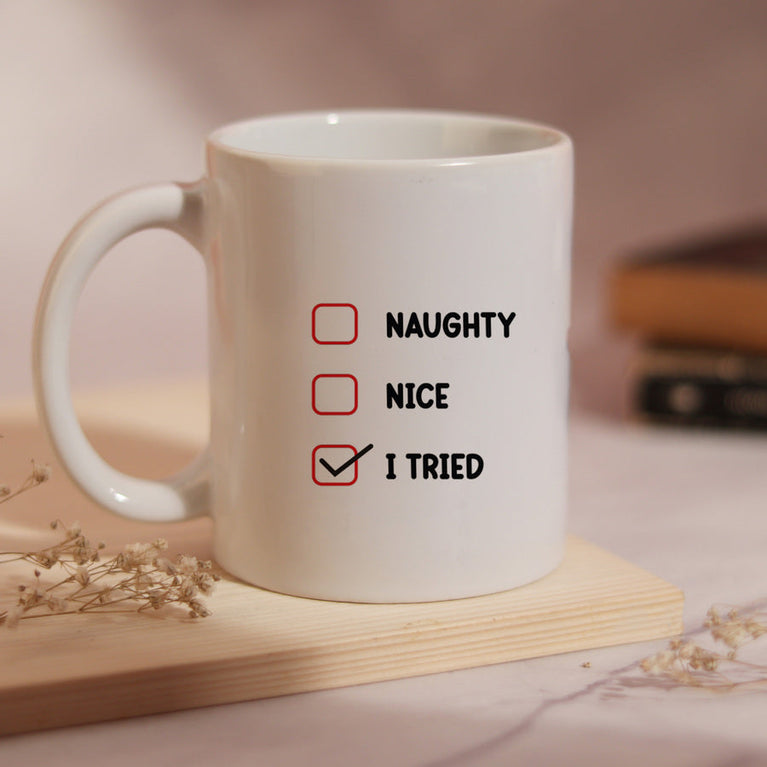 Surprise a Christmas-crazy person with their very own special christmas mug with santa’s naughty, nice or just plain I tried list. Perfect for that friend who’s maybe a little nice, a little naughty, and definitely a lot of ‘I Tried.’