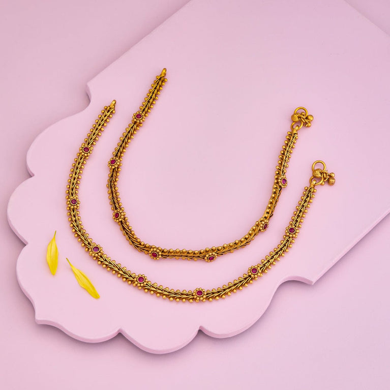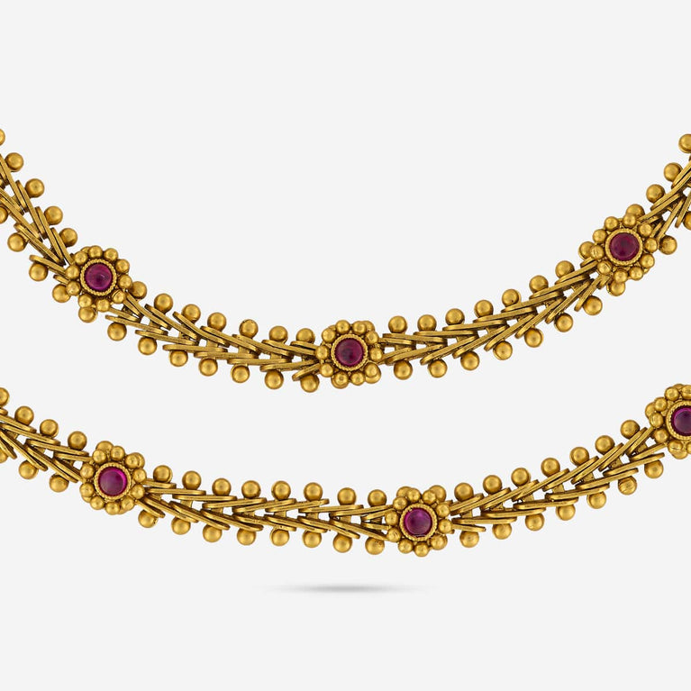 Kushal's Fashion Jewellery Antique TikkaA magnificent Tikka can make your outfit go from bland to eye-catching, which is why we present our latest antique Tikka. The best part of this Tikka is the gold polish that compliments the shine of the ruby, green, and ruby-green stones used in it. Wear it with your favourite outfit.