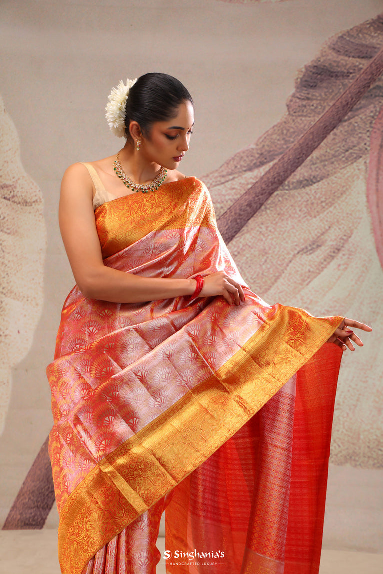 Georgia Peach Heritage Kanjivaram Silk Saree