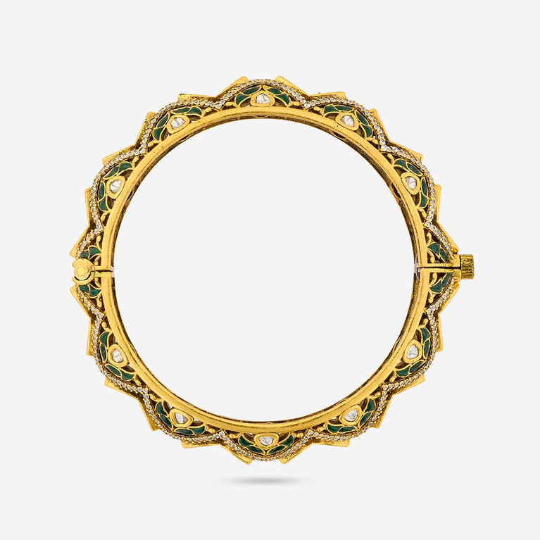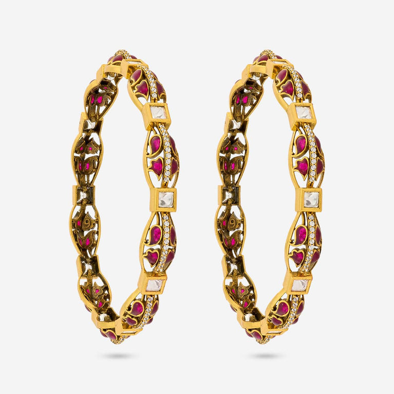 Kushal's Fashion Jewellery Paisley Design Kundan EarringAll types of polishes look splendid on Kundan stones, but Victorian polish gives it the finest look and our latest pair of Kundan earrings are here to give you that look. The Victorian polish on the Kundan stones paired with the green and ruby stones makes these hanging earrings one of the best accessories you can get this wedding season.