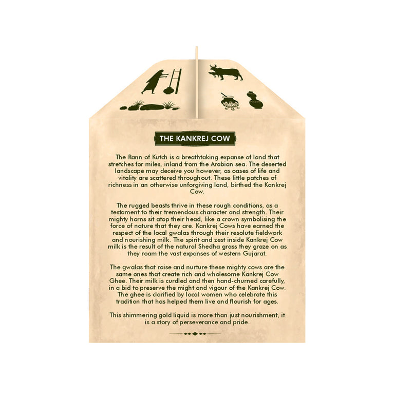 Handcrafted by the native gwalas of Kutch, Jivika Organics A2 Kankrej Cow Ghee is rich with all the Ayurvedic benefits of traditional Bilona™ ghee. Churned from the nutritious Whole Curds of A2 Kankrej Cow Milk, this ghee is free from harmful trans fats and cholesterol. Each drop of Kankrej Cow Ghee is made with the principles of Purity™ and Authenticity™ above all.