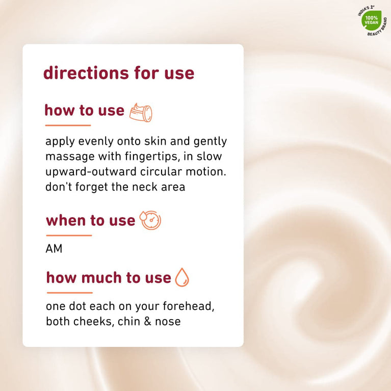 Packed with the goodness of Saffron & Kumkumadi Oil, this moisturizer enhances glow & brightens skin by working on dark spots & pigmentation. It is also fortified with SPF 35 to protect your skin from sun damage and tanning.