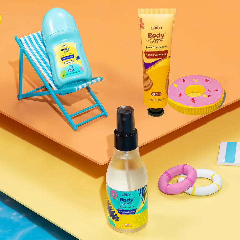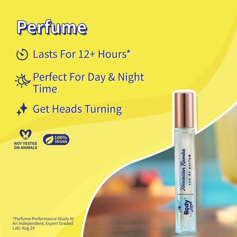 Smell like a beachy goddess. All. Day. Long. This trio’s got everything, the shower goals, the spritz, and the staying power - to turn your routine into a tropical escape.What’s in this combo?a. Hawaiian Rumba Shower Gel - Paradise In A Bottle! Say aloha to coconuts, passionfruit, vanilla & floral hints from Hawaii. Who can say no to rumba on a heavenly Hawaiian beach? :)b. Hawaiian Rumba Body Mist – Aloe-ha! That dream, Hawaii vacay, now just a whiff away! Say aloe to this “mist-have” tropical cocktail..with aloe juice!c. Hawaiian Rumba Perfume - Why go anywhere when you can experience the magnificent tropical paradise a.k.a Hawaii, in just one spritz? Get transported to a bright blue sky, pina coladas & blissful Hawaiian beaches with this coconut, passionfruit & hints of vanilla-infused scent!