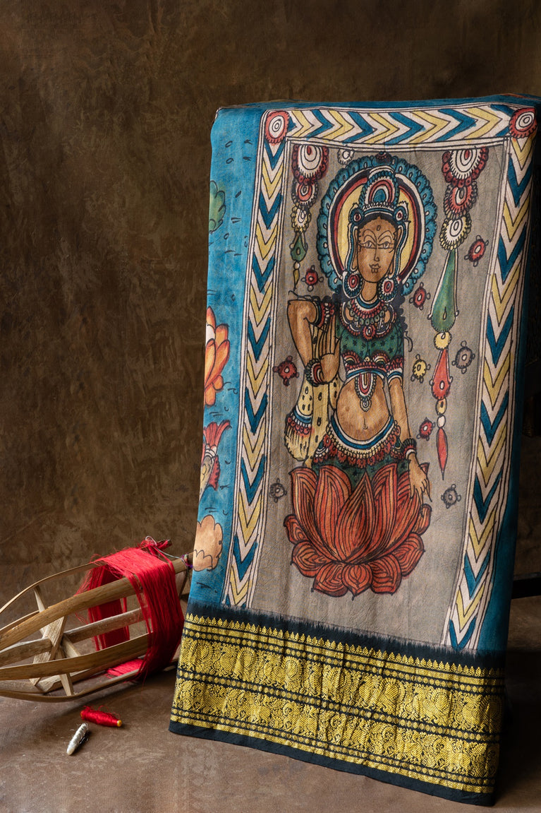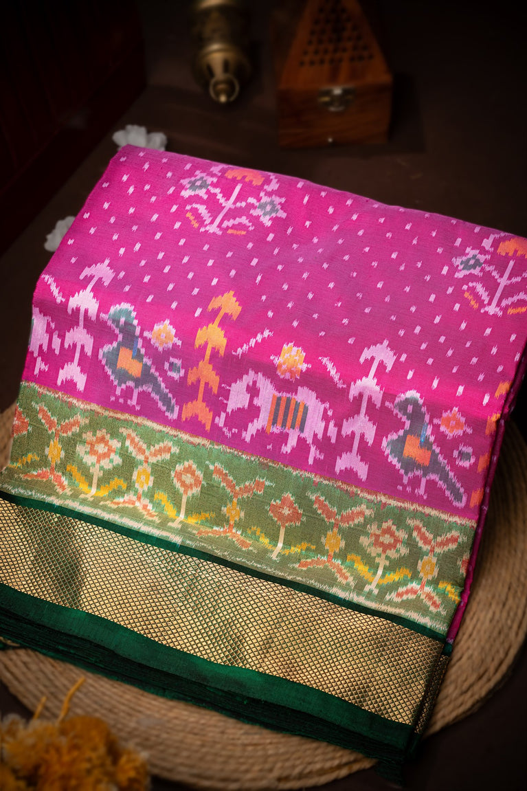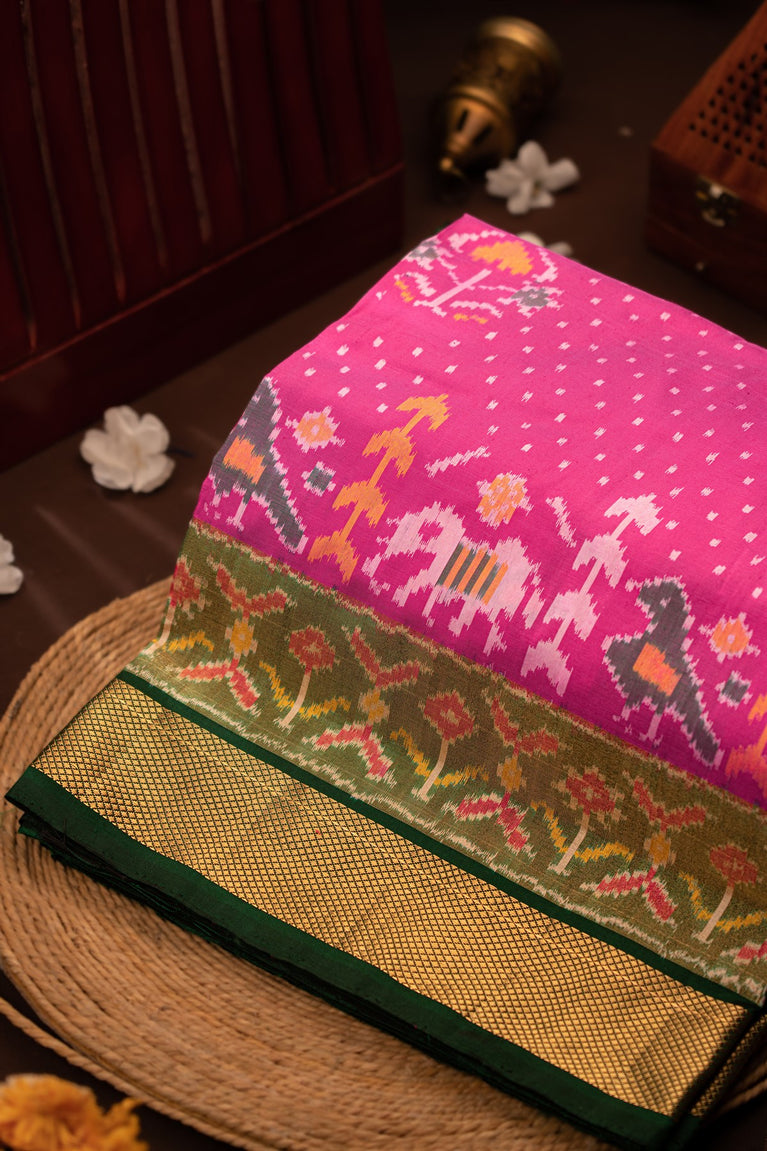 Mandir Peacock Blue & Olive Green Patan Patola Ikat Saree