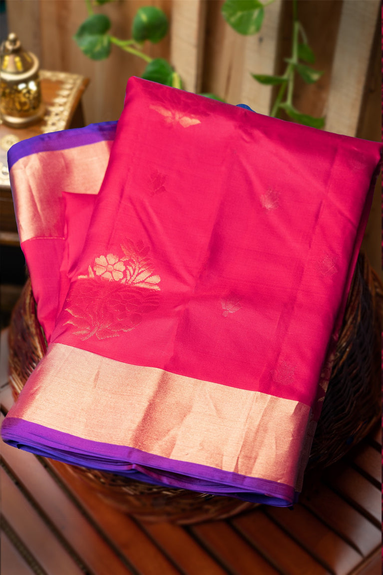 Mandir Pink & Coral Venkatagiri Buttis Saree