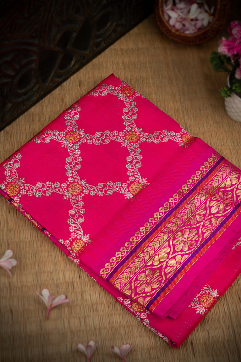Mandir Pink & Gold Banarasi Floral Jaal Saree