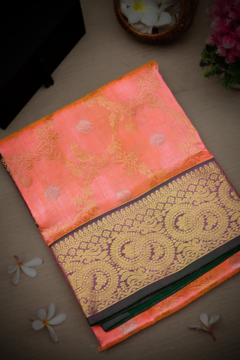 Mandir Peach & Green Venkatagiri Jaal Saree