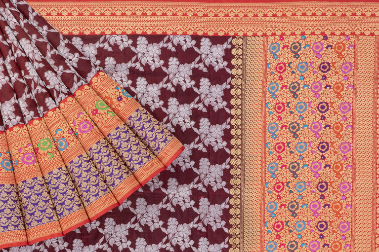 Mandir Maroon & Gold Banarasi Jaal Saree