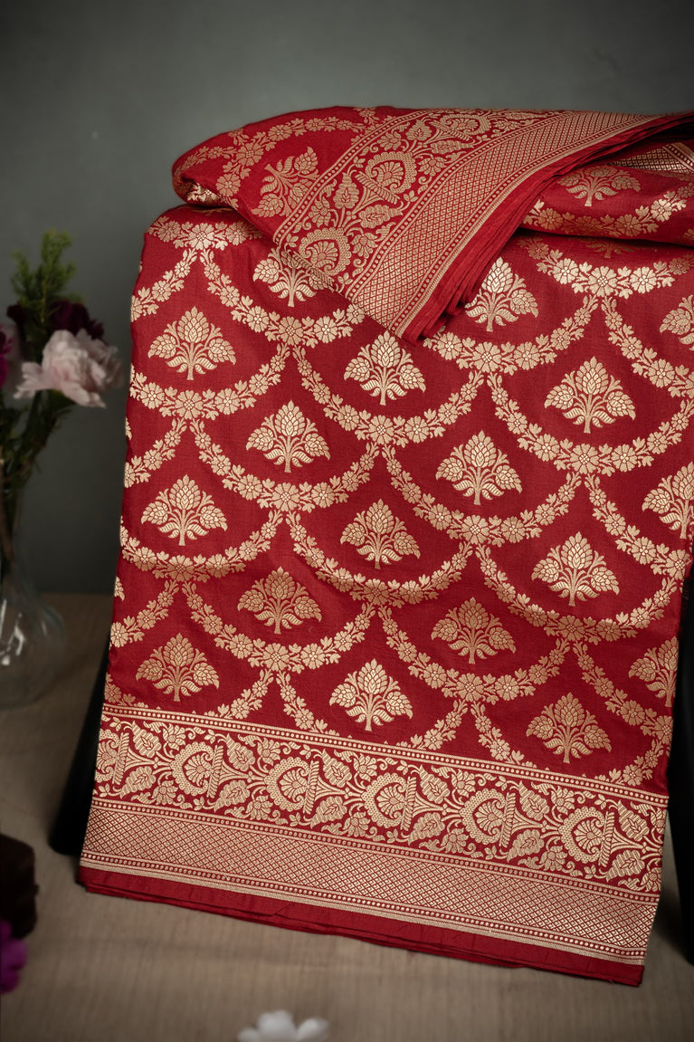 Mandir Maroon & Red Banarasi Jaal Saree