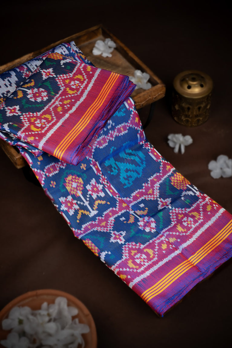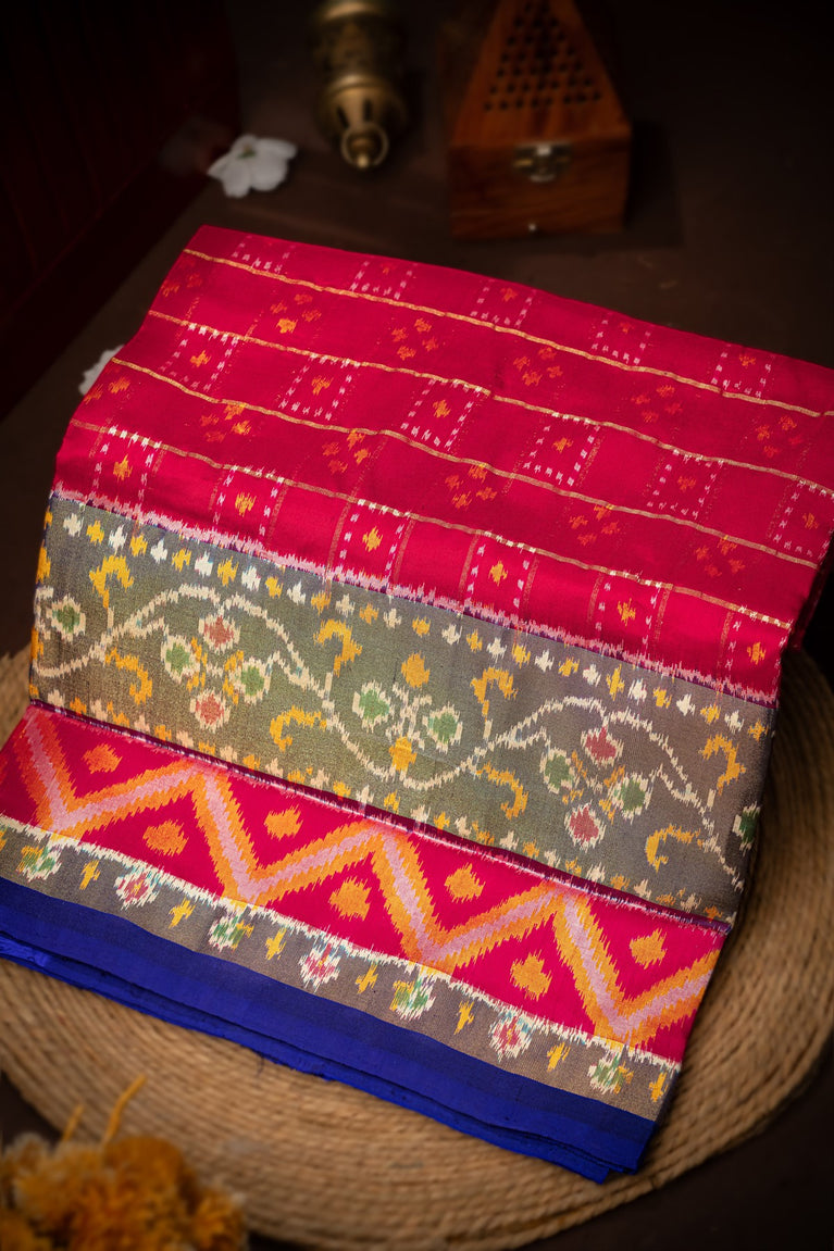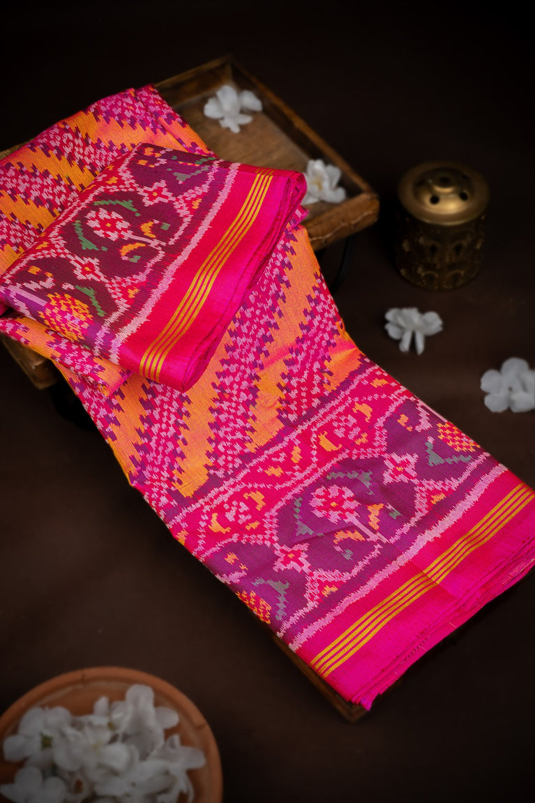 Mandir Multi-Colour & Pink Patan Patola Ikat Saree