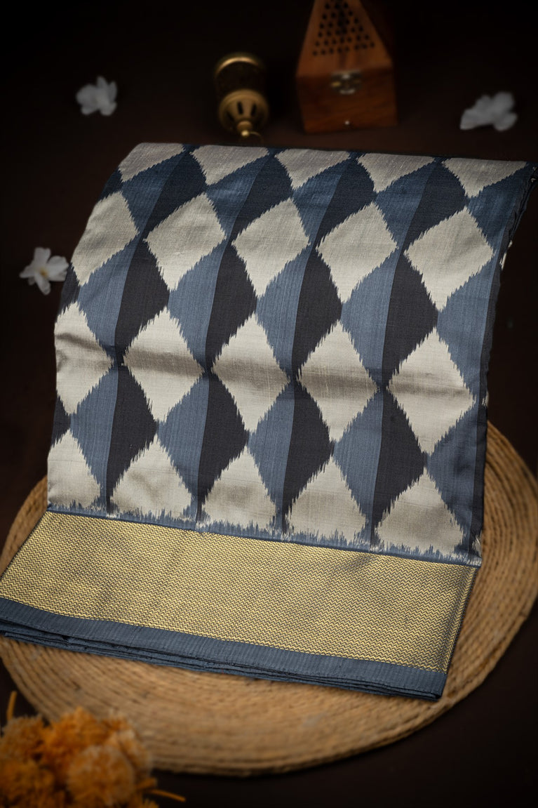 Mandir Multi-Colour & Dark Grey Kanchi Ikat Ikat Saree