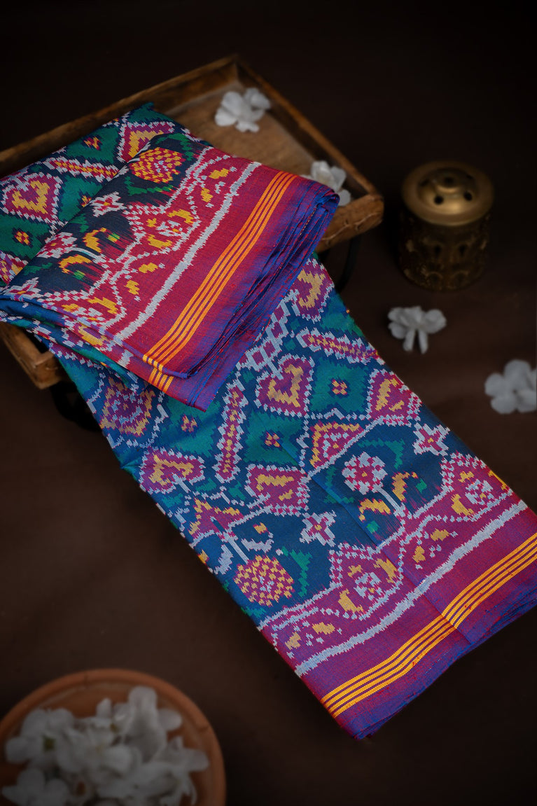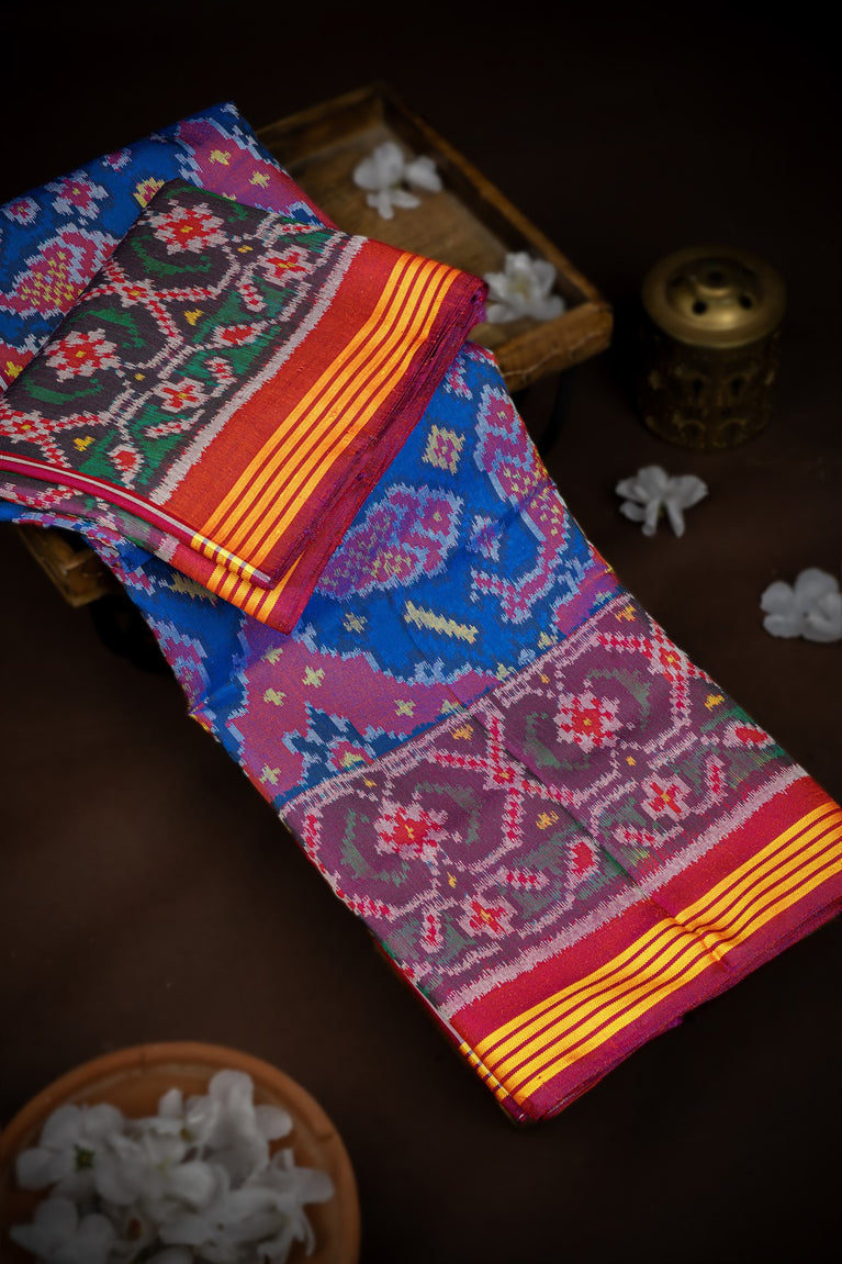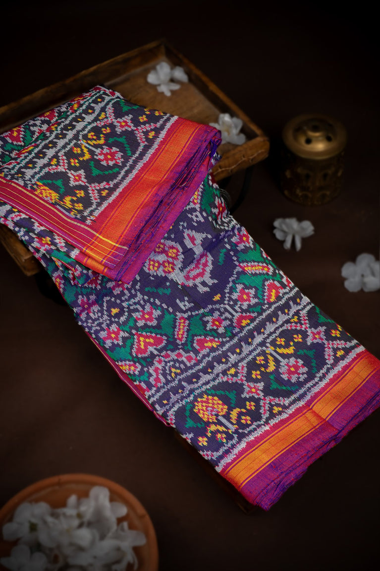 Mandir Multi-Colour & Purple Patan Patola Ikat Saree