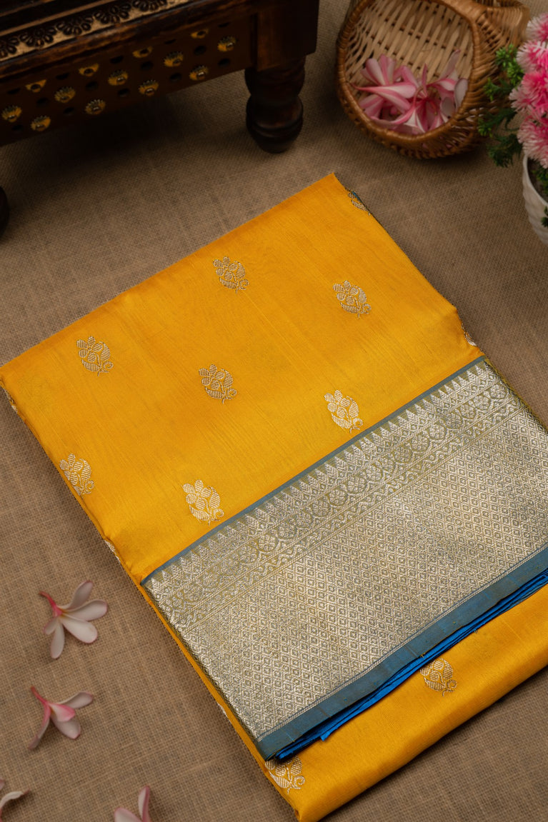 Mandir Mustard & Saffron Venkatagiri Motifs Saree